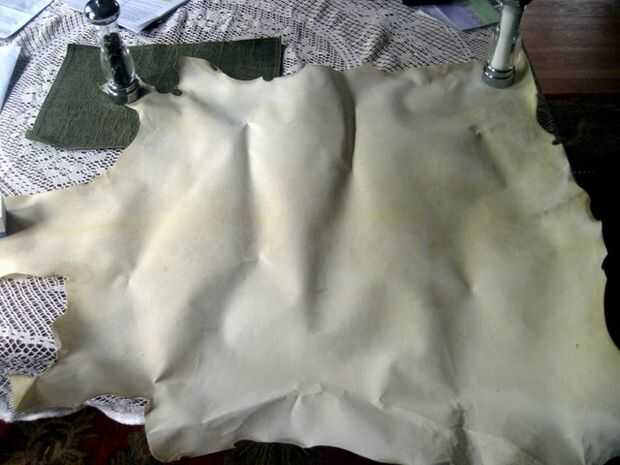 Hay muchos tipos de pieles, pero usted debe usar una que tiene el espesor apropiado para las características de tipo y el sonido de tambor deseadas. El Bongo más pequeño (también conocido como el "macho"), una piel fina se llama para. Seleccione un área está libre de defectos que puedan disminuir la fuerza de la cabeza. Esta piel recogió unos pliegues y abolladuras en tránsito desde Colombia, pero podemos trabajar alrededor de los