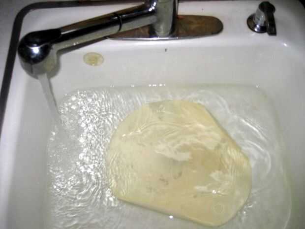 Remojo la piel nueva en agua tibia ablandará la piel en unos 30-60 minutos. Pieles más gruesas como las de congas pueden requerir 4 horas o más dependiendo del grosor y tipo de piel (vaca, mula, etc.). La piel debe ser muy flexible antes de montarla.