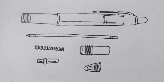 Sentir molesto que su pluma vino aparte y espero que todas las partes están allí. Recoger las piezas.
