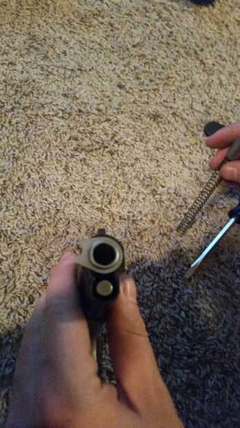 En este paso el retén del cañón se mueven lo suficiente para mantener el retenedor de resorte en su lugar y pasar al siguiente paso.
