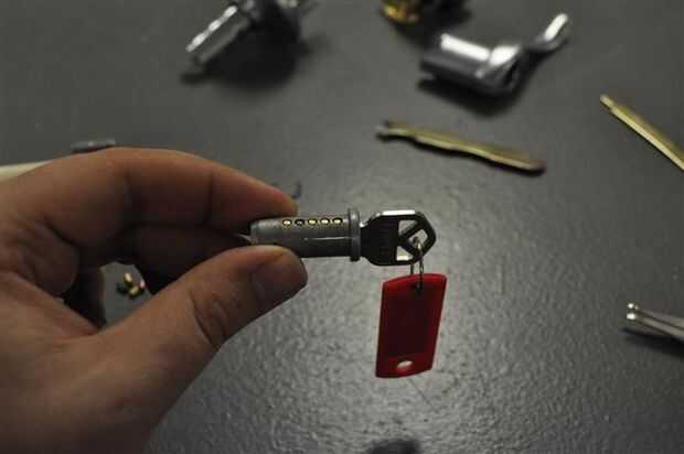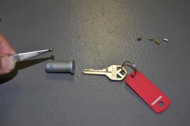 Una vez que todos los pernos en el cilindro, debe descansar irregularmente sin la tecla en y uniformemente en toda la línea de corte una vez que usted inserte la llave. Tenga en cuenta las diferencias entre fotos 2 y 3.