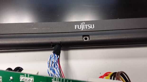 E8410 portátil cuenta con una carcasa de aleación de magnesio en el LCD (que es la razón por la que elegir el modelo!), y es difícil de cortar metal con mis herramientas un mínimo pelados. Así que he hecho una discreta incisión en el área de plástica de la cubierta frontal para permitir pasar el cableado.