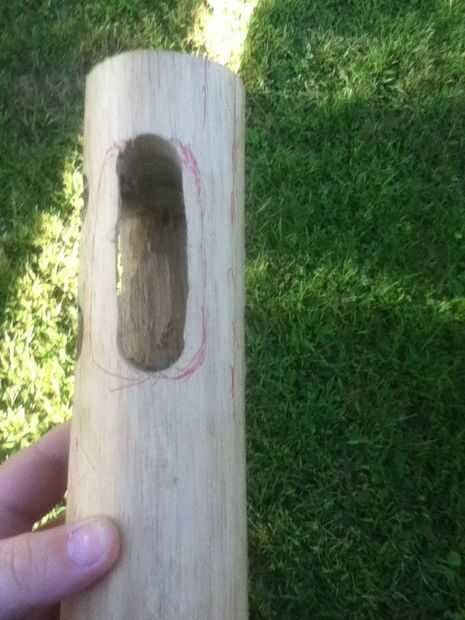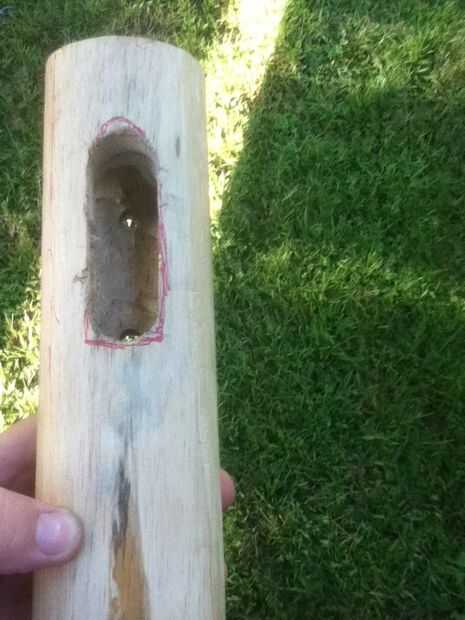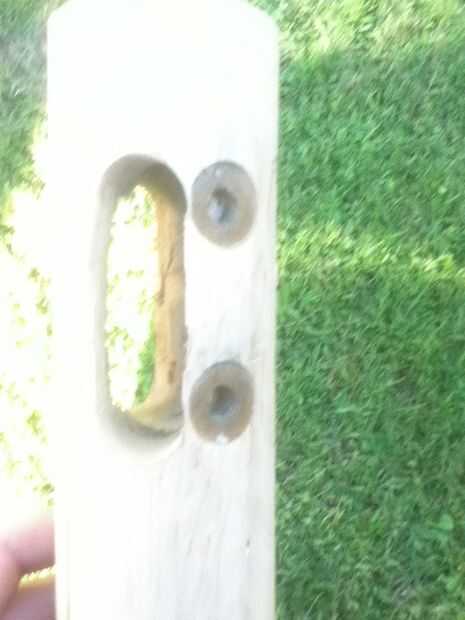 Después de que se utilizó un taladro portátil y un serrucho para hacer 3 agujeros. Los agujeros habría sido mucho más incluso, pero descuidado medir.