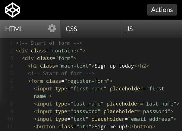 Primero vamos a crear un envase simple y una forma con una con los campos que necesitamos. También no puedo mostrar aquí el código porque no tengo una cuenta pro, pero a continuación encontrará un enlace a la codepen.