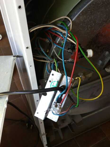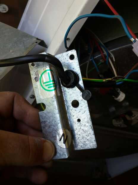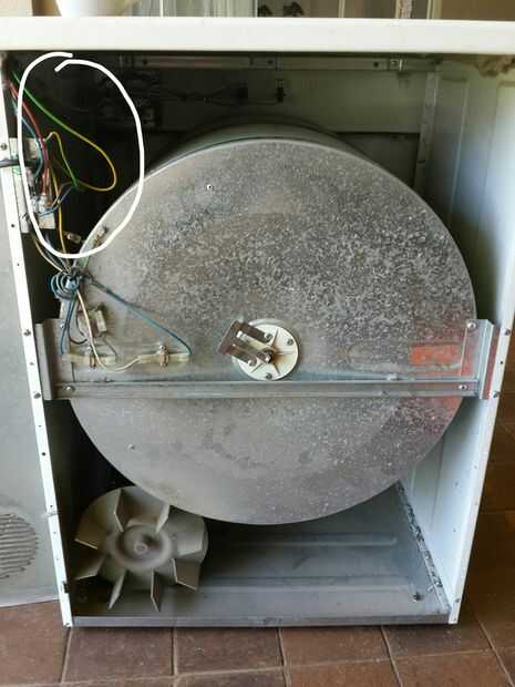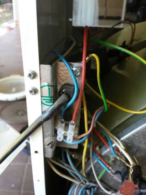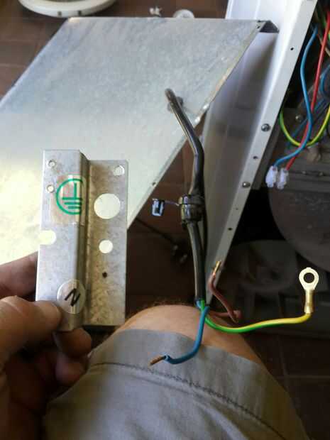Comience con la placa donde va el cable de alimentación en la secadora. Esta también es la ubicación de los cables de tierra (en mi modelo. Tenga en cuenta la indicada pegados en la placa)