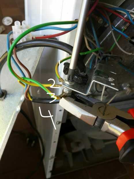 Mueva el arnés (manojo de alambres) fuera del camino mientras eliminas el resto de los cables (cable de tierra conectado a la placa trasera del elemento y también los cables del elemento) ambos se aprecia en la foto 9. Foto 10 es de todos los cables que se desconectaron. Puse los cables en la parte superior del tambor hacia el frente. ver foto 10...