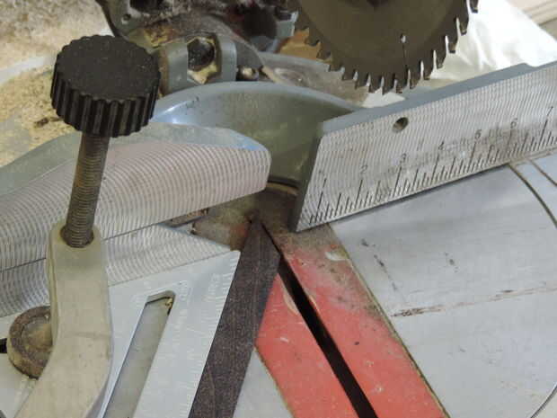 Paso 9: Corte los ángulos de las tiras, es cómo configurar mi chopsaw hasta conseguir el ángulo correcto.