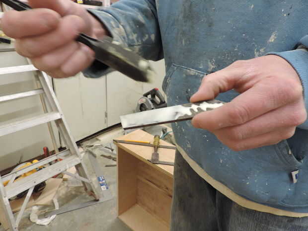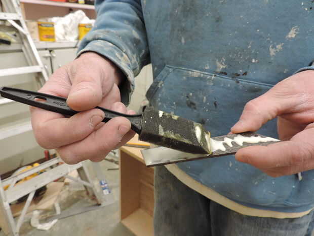 Aplique pegamento en las tiras que van a ser pegados y clavados en el primer cajón