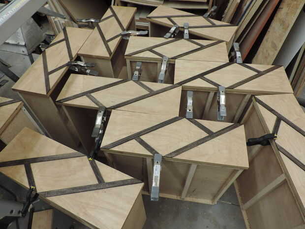 Después de clavar los listones de álamo de brad, aplique las abrazaderas de muelle para los bordes. Porque son el primer lugar en el que surge. Limpiar todo el exceso de pegamento y dejar secar durante una hora.