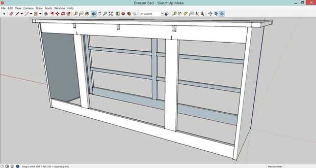 Basado en su tamaño de cama deseado, es necesario primero calcular las dimensiones de sus aparadores. Hemos recibido un colchón de tamaño completo «heredada», por lo que decidimos hacer un diseño flexible que funcione ya sea con un lleno o colchón tamaño queen. Hemos colocado encima un 65 "x 20" dresser, que se fijó 18" apartes. Luego los estantes en el extremo sería tiempo suficiente para que un colchón. Antes de cortar cualquier madera, usé un dibujo de google gratis programa para diseñar un panel frontal y posterior para las cotas de referencia. En el panel posterior del bastidor tenía dos 3" tablas verticales para la seguridad de los corredores, y empotrar el marco ¼" en el aparador para que ¼" copia de seguridad se sentaría al ras. Otra previsión importante en el panel posterior fue 1-1/4", ¾" amplia surcos profundos a lo largo del borde superior. Estas ranuras permiten travesaños abarcar el 18" la brecha entre los aparadores para sujetar los listones que apoyarán el colchón. Hice tres ranuras equidistantes, pero si lo estuviera haciendo otra vez, me hacen cuatro surcos y el exterior, tengan en cada extremo de la cómoda, para el soporte del colchón agregado.