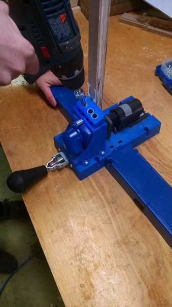 Mide todas las piezas del bosquejo de google modelo de, planeó el uso más eficiente de nuestras hojas de madera contrachapada de ¾" y cortar nuestras piezas. Mientras que estábamos usando la Sierra de mesa y corte ¾" piezas, también recortar nuestros dos aparador tapas y apartarlas. Después de cortar todas las piezas del lado del marco y poner ellos, marcamos donde utilizaría el plantilla kreg jig en cada articulación incluyendo los agujeros para sujetar la parte superior del aparador. Se utilizó el plantilla kreg jig para perforar agujeros de bolsillo donde marcó y pegado/atornillado el marco frontal y posterior. Es muy importante la parte frontal cuadrado y plano. Una cosa que nos ayudó fue haciendo una pieza ¾" madera contrachapada que fue la altura exacta nuestro cajón espacios sería, así que cuando estábamos apretándolos juntos usamos al espaciador para hacerlos todos la altura correcta.