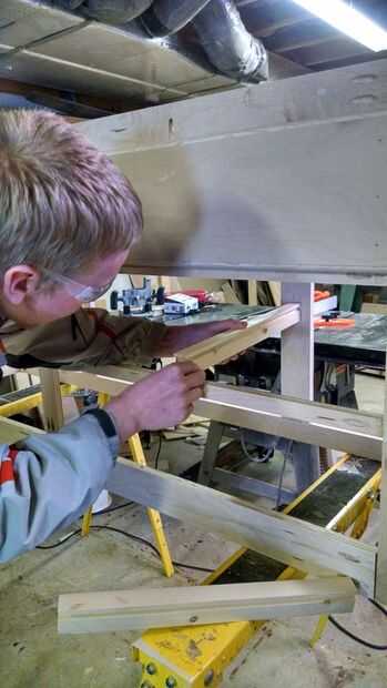 Compramos a cajón plástico kits del reemplazo de corredor para 12 cajones de Lowes. Hemos comprado en el tamaño más grande para que pudiéramos hacer corredores de madera. Arrancó un 2 por 4 por la mitad y luego arrancó las dimensiones a 1-1/16" por 1-5/8 por 16-3/4". Utilizando la hoja de ranurar, ponemos ¼" surcos en cada pieza para crear un corredor en forma de t. Después de cortar cada corredor de madera, resbaló el pedazo de corredor de cajón de plástico encima para asegurarse de que era un suave ajuste. Había jodido nuestros piezas de plástico sobre las espaldas de todos nuestros cajones y nuestros corredores de madera había instalado en nuestro marco de aparador. Para instalar a los corredores, nos vuelva a recortar cada pieza para encajar exactamente en la posición deseada. Después de marcar el centro del espacio de cajón, poner pegamento en el extremo anterior y posterior, centrado en la pieza y utiliza una pistola de clavos para unir la parte delantera. Luego me trasladé a la parte posterior para el corredor, mientras mi esposa puso en el cajón y lo destruyó. Hemos ajustado la parte posterior del corredor para que el frente del cajón era al ras con el marco. Cuando pensamos el cajón miré nivel y ras, clavado en la pieza posterior. Como nos fuimos, dejamos cada cajón en su lugar para asegurarse de que las caras son paralelo. Nosotros también etiquetar cada cajón para asegurarse de que podría ser igualado a su ajuste personalizado punto.