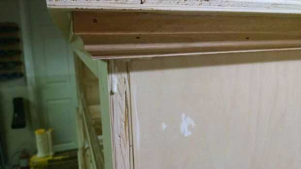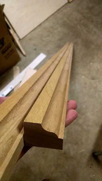 No compramos ningún ajuste para este proyecto, así que hicimos nuestra propia con algún antiguo madera puesta alrededor. Nos envían un borde con una fantasía mirando poco, luego arrancó por lo que tenemos una tira de 1-1/4" de ancho largo. Hicimos cuatro tiras largas, utiliza la sierra ingletadora para cortar ángulos de 45 grados para las esquinas y había clavado bajo el voladizo superior.