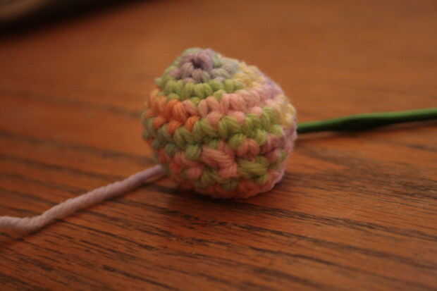 Disminuye al principio y sc la vuelta. Únete y rematar. Armadura en ambos extremos del hilo en el interior de la acogedora.