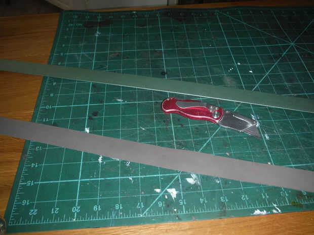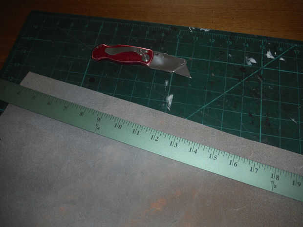 Usted necesitará agregar un adicional 1 1/4" en cada extremo de la tira de cuero para el accesorio del anillo. En la mía fue 23 "+ 1 1/4" + 1 1/4 "= 25 1/2". El ancho de la tira de cuero debe ser 1 1/16" para permitir que se envuelva alrededor de la médula y dejar espacio para coser.