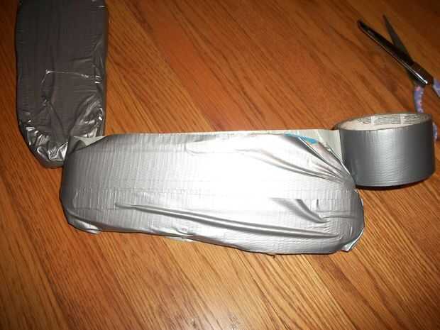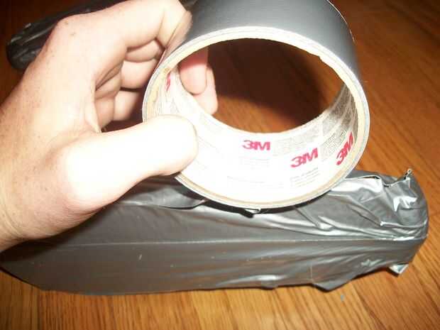 Conducto cinta alrededor y alrededor de la sandalia hasta que sienta que tiene suficiente cinta en. Recomiendo tres veces alrededor de la sandalia toda. Continuación del conducto cinta alrededor del lado de la sandalia.