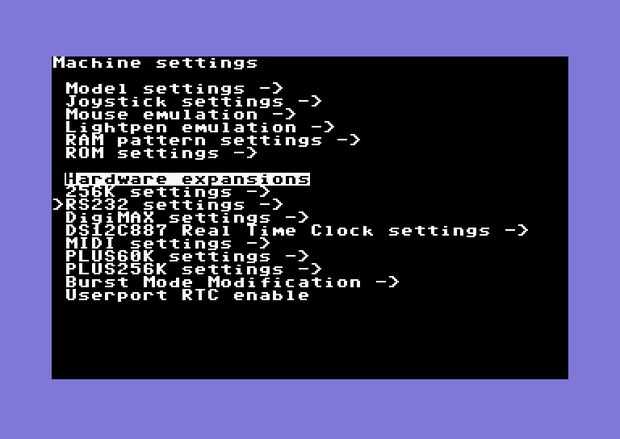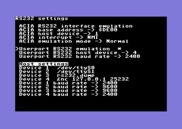 Flecha hacia abajo para "emulación Userport RS232" y pulsar ENTER para activar. Podrá mostrar un asterisco *