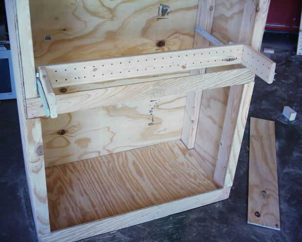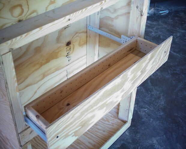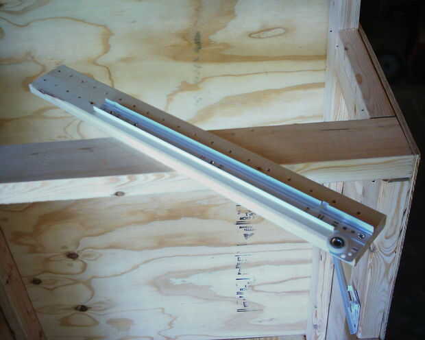 Un carril de velocidad es el sueño de un camarero. Colocar sus licores utilizadas allí y hace real la vida fácil cuando todos tus amigos lo que Ron y Coca-Cola, gato y coquiza, tónicos de vodka, ect... El riel debe salir aproximadamente 6"(sale un poco de espacio extra para hacerla un poco más versátil). Quería dejar espacio para 15" desde la parte inferior de la baranda que me fui para que un carril de 18" para que fue apoyado en la espalda de 2 "x 4" porque, bueno, botellas de licor tienden a ser pesados. Siguientes las instrucciones que vienen en la bolsa puse el carril. RHE mitad superior del carril tuvo que cortar corto para cuánto tiempo he querido tren de velocidad que. Utilicé restos para formar los cuatro exteriores y cortan la madera para formar la parte inferior y luego se corta la parte delantera de la madera contrachapada para hacer sentarse al ras con el marco. Además, he añadido una tira de madera de 2" de alto para colocar en toda la cara de la barra así que las puertas de carril y el gabinete de velocidad sentadas al ras.