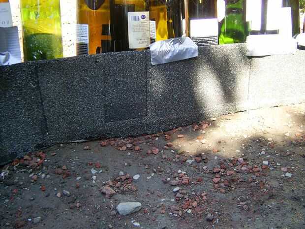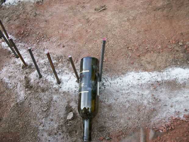 Unidad 4 las barras en el suelo separación 3 pulgadas aparte. Una de las botellas puede utilizar como una guía para el espaciado.