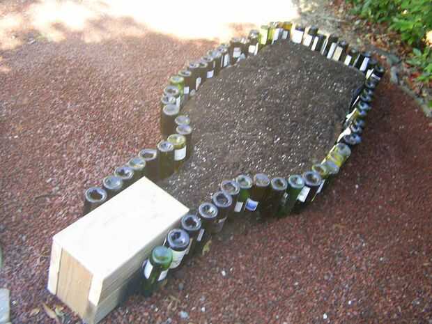 2 - decidir sobre el tamaño de su jardín. Botella de vino pequeña son aproximadamente 3 pulgadas de ancho y 9 pulgadas de alto. Usé los 10 veces ampliación de la forma de la botella y acabó con la dimensión de 30 pulgadas de ancho por 90 pulgadas de alto para el jardín. Limpiar el área que necesita con la orientación que se traduce en mejor ángulo de visión.