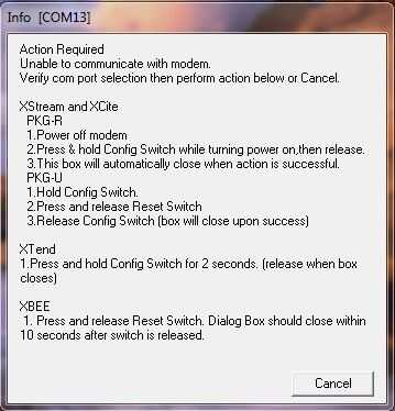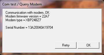 Luego presione prueba o consulta. Se obtiene el siguiente cuadro de diálogo COM prueba o consulta. Si no aparece un cuadro de diálogo, aparecerá otro cuadro de información (puerto COM). Si aparece el cuadro de este último entonces conectar la tierra al pin reset de lo Xbee hasta que aparece el primer cuadro de diálogo.