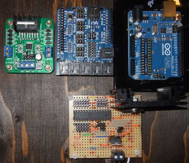 presento un diseño compacto de una placa perforada placa Arduino (DIYduino) que incluye un controlador de motor 2A y además tiene la funcionalidad de un protector del sensor. La versión de 2 canales cuesta aproximadamente $29,43 y es más asequible comparado con $39,00 para un sistema comercialmente disponible que consiste en un