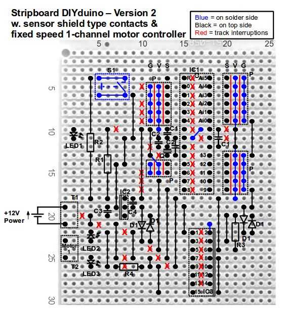 2. Rojas líneas son interrupciones de la pista entre ubicaciones de los orificios.