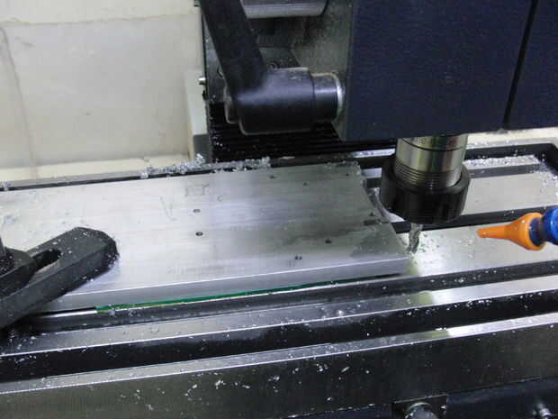Molido esta parte con un molino de ranura carburo sólido de 3mm 3flute centercutting 7000 rpm y una velocidad de avance mínima de 150mm con un montón de enfriamiento líquido, (etanol techinical desnaturalizado 99% con 3% iso propanol, por lo que en realidad el 96% de etanol con el 3% de IPA y 1% probablemente agua)