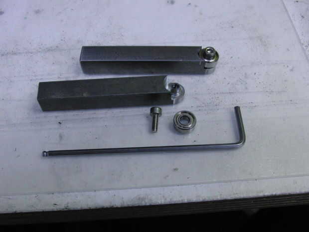 Usé el taladro de 8mm para quitar las rebabas de los agujeros. Entonces yo montado el rodamiento en el tallo, para esto utilicé un martillo y un pedazo de varilla de aluminio. (Empecé con presionar pero ya que las piezas son tan pequeñas, un par de toques suaves sobre la varilla de aluminio trabajado mejor)