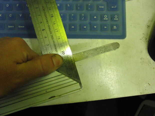 Después de la cnc trabaja a máquina un sujeta la pieza de trabajo y decidió que una longitud total de 65mm sería una longitud agradable, con mis pinzas, un rotulador y un hack vieron que cortar a la longitud. (sí esto podría haber sido una operación de cnc también)