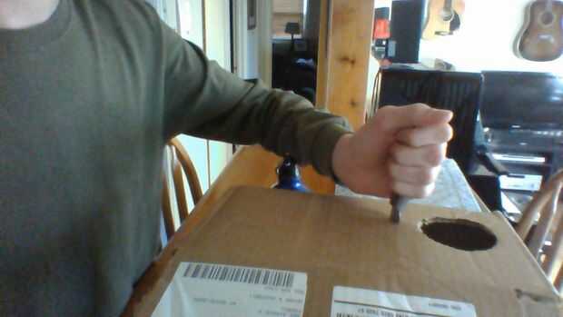 en tercer lugar, use un cuchillo para recortar donde se dibujaron los círculos en su caja
