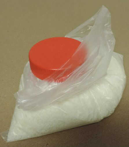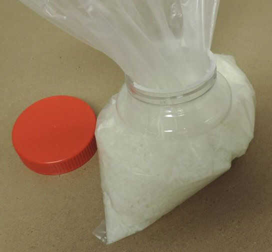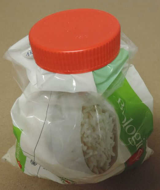 Tome una bolsa de almacenamiento de alimentos de una forma que te será útil teniendo en cuenta la forma de los elementos se almacenan. Con la parte superior abierta de la jarra en una mano, la parte superior de la bolsa de plástico con el arroz o lo que usted está almacenando para arriba a través de la abertura de la alimentación. Abra la tapa de la bolsa de plástico y doble sobre la parte superior de las roscas de tornillo en la jarra. Evacuar mayor cantidad de aire posible y luego vuelva a enroscar la tapa de la rosca del frasco.