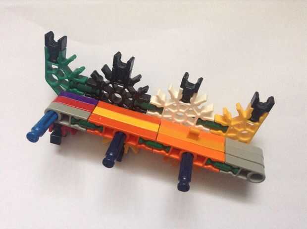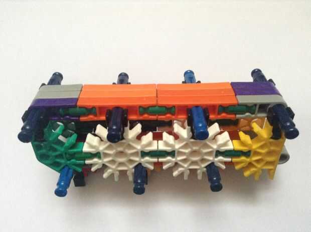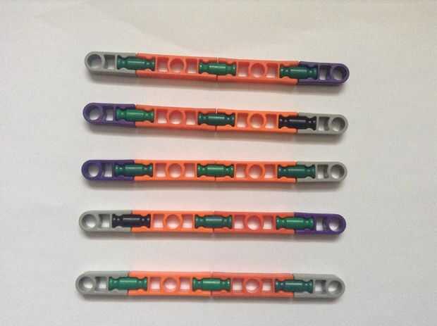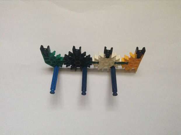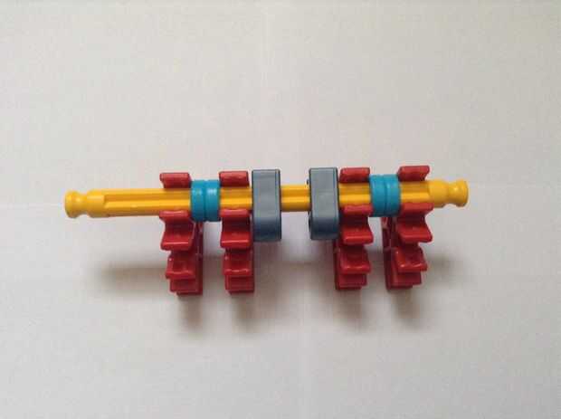 6) ranura 2 de las piezas en la figura 2, así como la pieza en el paso 3 sobre las varillas azules.