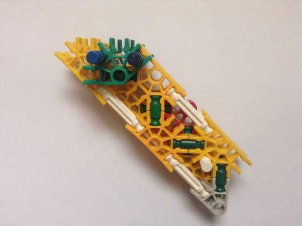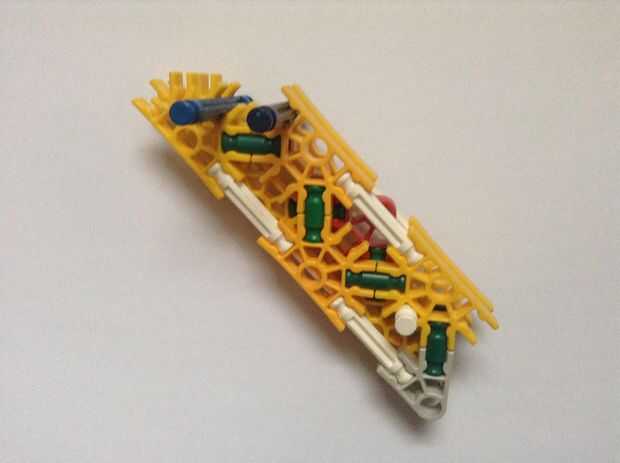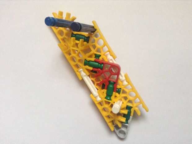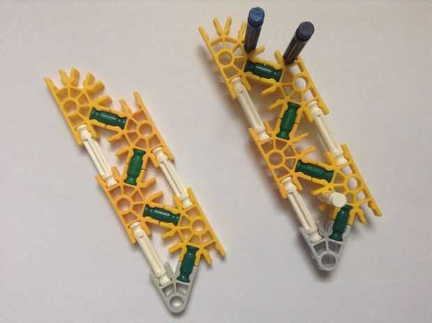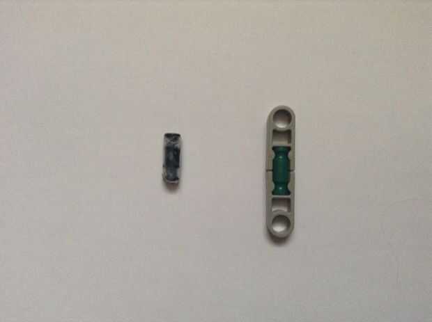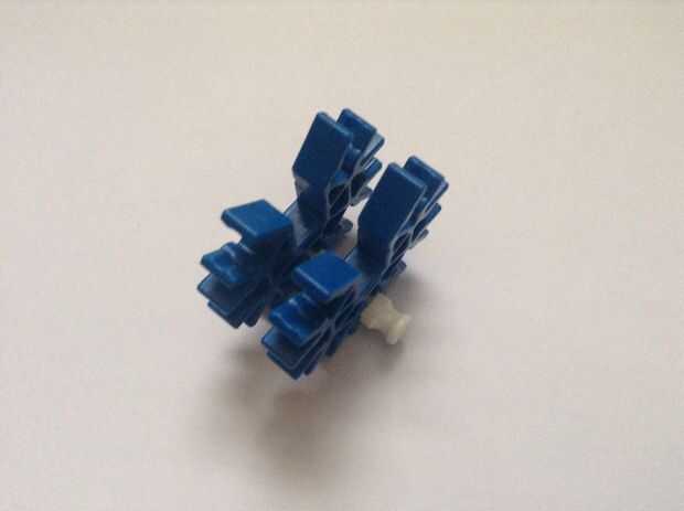 9) esto puede ser difícil. Coloque el conector verde en ambas barras de azul, a cada lado. Ser cuidadoso al hacer esto, es fácil de romper los conectores verdes.