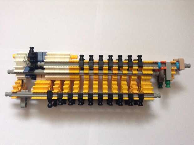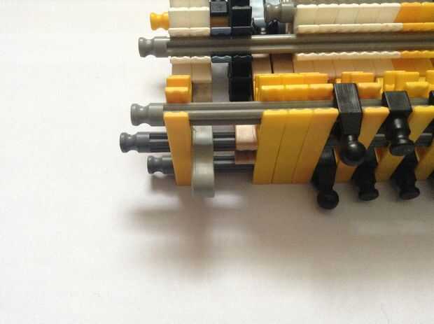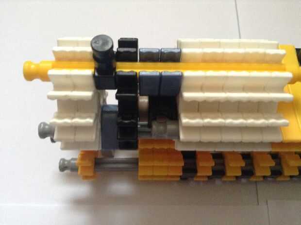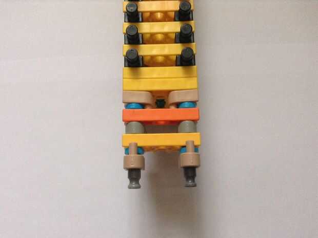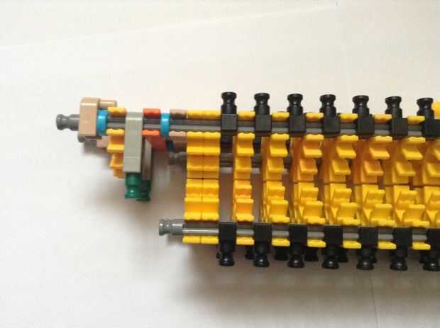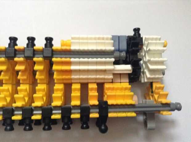 Se trata de que el gatillo se celebrará, así como de la munición. Realmente no podía traer yo aparte y reconstruirlo (Sorry!), pero tiene un diseño relativamente simple así que no debería ser demasiado difícil de construir. Las filas de conectores Y son hacer más fácil ajustar la varilla en la fila de conectores amarillos, pero también convenientemente reducen la fricción en el cañón, que es un agregado pro. Cuadro 4 puede ser un poco confuso; es una toma conjunta de bola a su lado y sujeta con las pinzas tan y azules. Si usted quiere, la fila inferior de conectores puede ser unida a la fila superior con barras verdes, pero no es necesario, que soy simplemente perezoso.