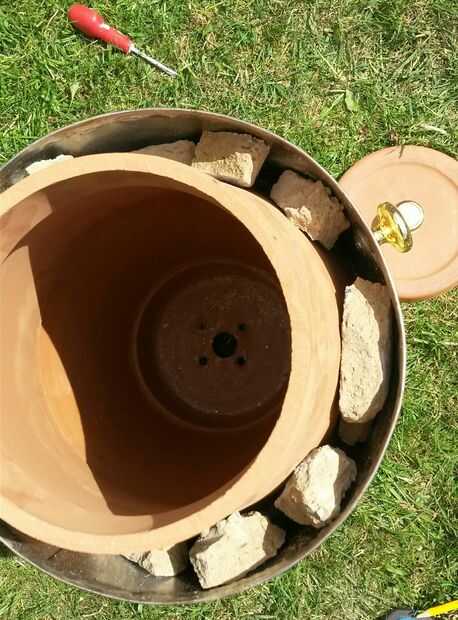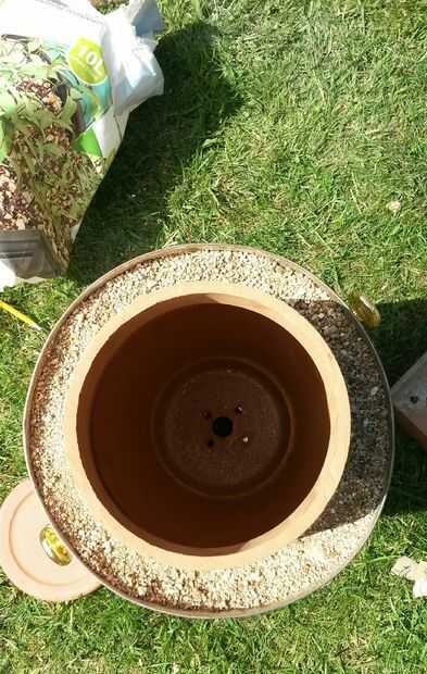 Estaba acabando en vermiculita tan encajada en algunos trozos extra concreto para llenar el vacío. No el mejor de los aisladores que ayudan a sostener la parte superior de la mitad en situ.