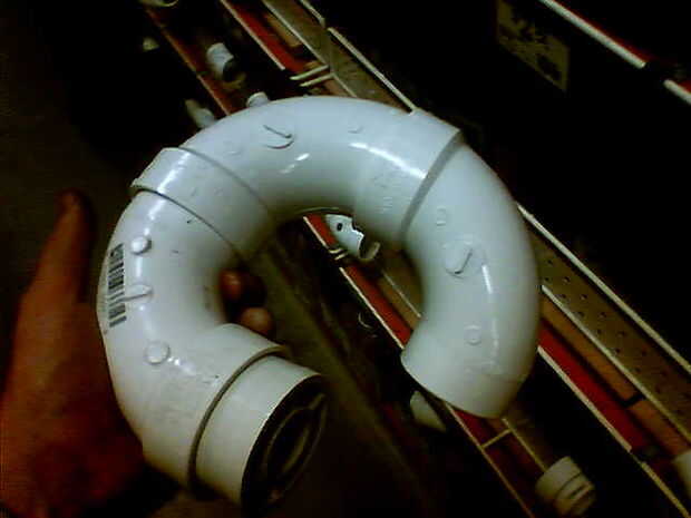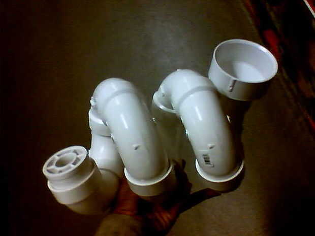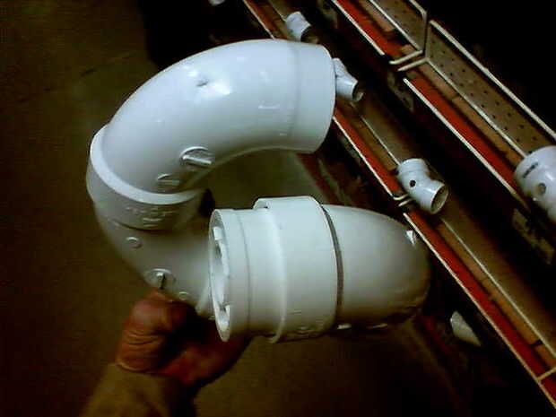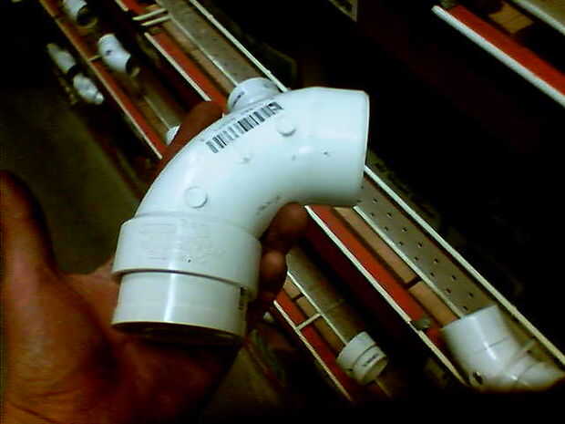 En estas fotos, estoy montando en el pasillo en Home Depot... A partir de la boquilla, atribuyo el primer codo... con cada sección adicional, desea una leve 'twist' o desplazamiento a realizar una espiral adecuada. A menos que, por supuesto, usted no quiere hacer una espiral... Pero estoy haciendo una espiral. Así que aquí vamos.