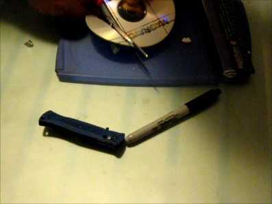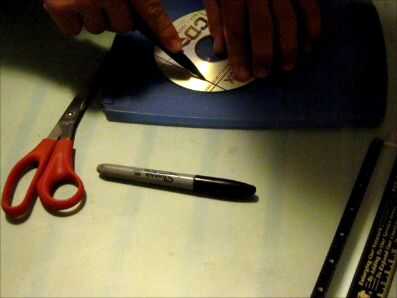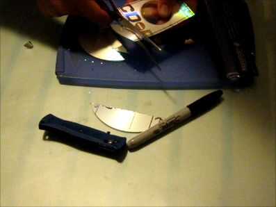 Usar el cuchillo para marcar las dimensiones del espejo en el CD. Corte el CD tan fina como sea posible, y se puede utilizar el borde de una mesa para "quite" el material adicional. O usted puede cortar el CD con unas tijeras.