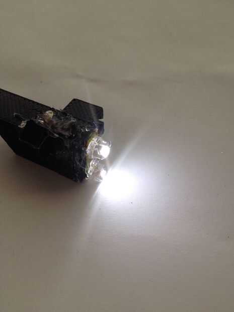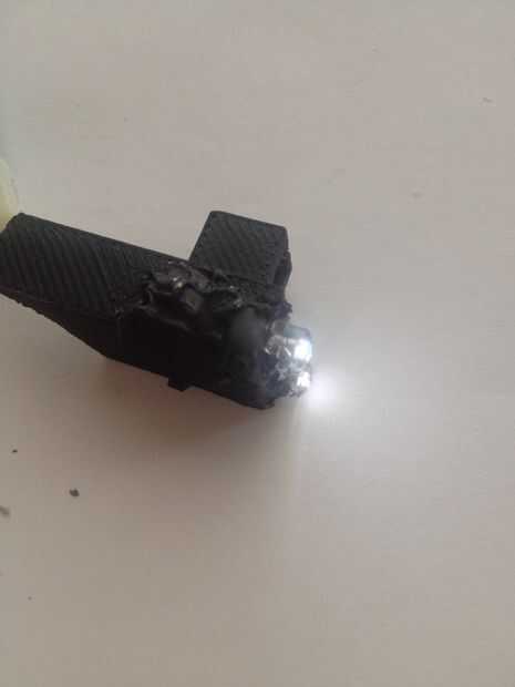Ahora listo! Casi!! Yo estaba mirando la luz y decidió que se veía un poco fea. Iba a imprimir una pieza para cubrir el pegamento pero mi impresora no podía entrar en esa precisión. Así que pinté sobre el pegamento para completar el look! Si han llegado aquí y se dio cuenta de que hay algunos reflejos no tienes que reiniciar! Algunas personas sugerida en los comentarios a color alrededor del lado del led para reducir al mínimo el deslumbramiento.