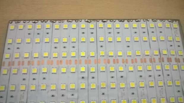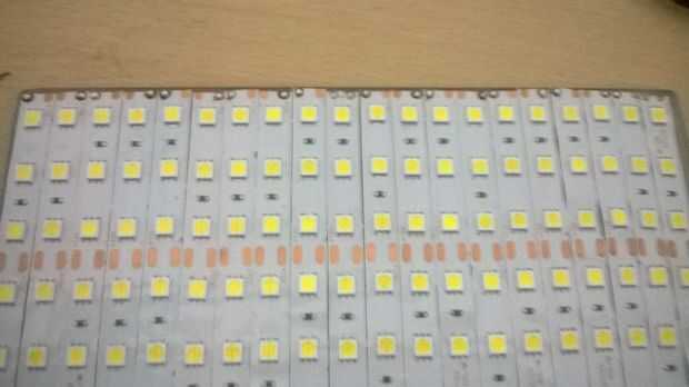 - Ahora la soldadura similar signos de cada dos tiras adyacentes a cada lado Asegúrese de que la tira esté funcionando en serie(como una tira continua) menos a menos y más a más uso algunos saltan alambre.