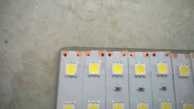 - Mientras que se pega la tira de LED Asegúrese de que la polaridad marcada en ella es algo así como + - -+ + - -+. (imagen 2)