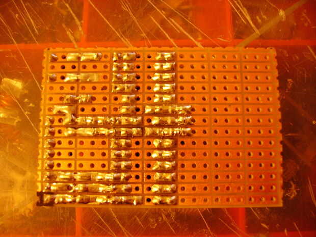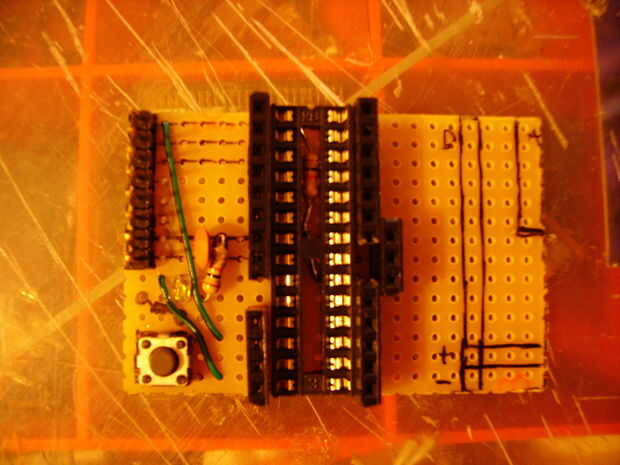 Tengo una tarjeta con el chip soldado como el que he puesto en un robot pequeño, sólo los pines que necesito están en el tablero y un par de puente H se suelda en demasiado como un tablero de hija.}