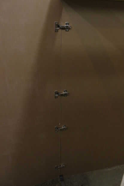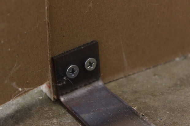 Cortar dos 39-3/4 "x 60-1/2" 3/4" madera contrachapada. Estos son los lados del armario. Luego cortar un trozo de 29-1/2 "x 60-1/2". Esta es la parte de atrás. Montar las 3 paredes con la parte posterior entre las partes. A continuación, será cortar la puerta del armario. Sus dimensiones son de 32-7/8 "x 59-5/8". La puerta es más corta que las paredes para permitir un espacio de 1/8" entre la parte superior de la puerta y el marco de la cama y una 3/4 diferencia entre la parte inferior de la puerta y el piso. Una vez que se corta la puerta, usted necesitará router a 4 puntos a lo largo de la parte posterior de la puerta para las bisagras. Hacen sólo tan profundo como usted necesita para que las bisagras calcen bien y asegúrese de que tiene uno bastante cerca de la cima, uno cerca de la parte inferior y luego uniformemente espaciar dos en medio de la puerta. Después se enrutan las ranuras de la bisagra, atornille las bisagras en la puerta y luego en el lado del armario. El último paso para la estructura del armario es atar los lados inferiores del armario juntos para evitar que se mueva lejos o hacia los demás. Esto se logra tomando la tira plana de metal, doblado en cada extremo y atornillar a cada lado. El punto de esta pieza es hacer la Plaza del armario por lo que la pieza debe ser 29-1/2" de largo después de que han sido doblados los extremos del metal.