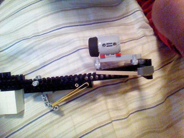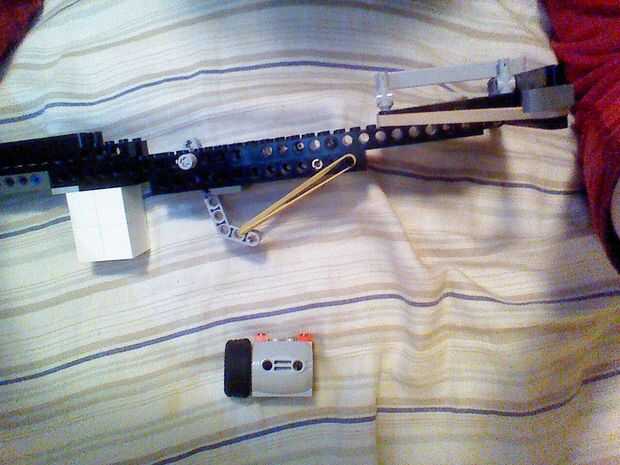 el otro día conseguí mantener un montón de Lego y goma bands.so me decidí a hacer una ballesta impresionante. Dispara a 15 millas por hora. es muy potente y bien precisa. se realizó con la ayuda de mi amigo.