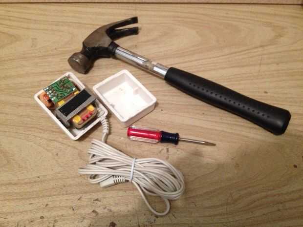 Si eres como yo, probablemente tienes un montón de estos adaptadores de pared vieja tirada por ahí. Son los dispositivos que convierten el alto voltaje AC en su casa en el bajo voltaje de CC para sus electrodomésticos. Puesto que nuestro circuito necesita una fuente de alimentación, y ya estamos enchufándolo a un tomacorriente de pared, son la elección perfecta para este proyecto. Encontrar uno que tiene una salida de sobre 9-12V DC. Cualquier más alto y el regulador de 5V a caliente. Cualquier menor y usted irá por debajo de la mínima tensión de la bobina del relé.