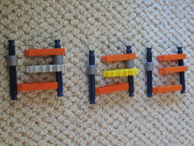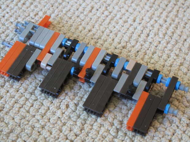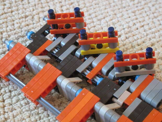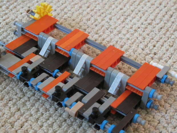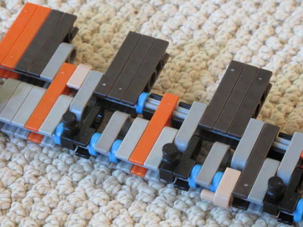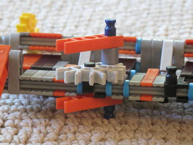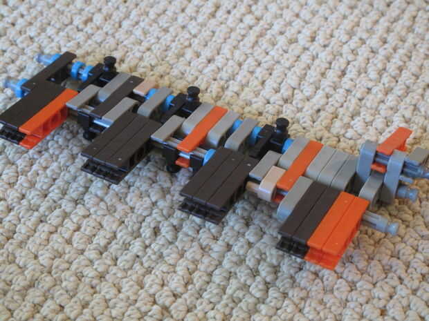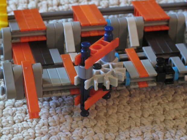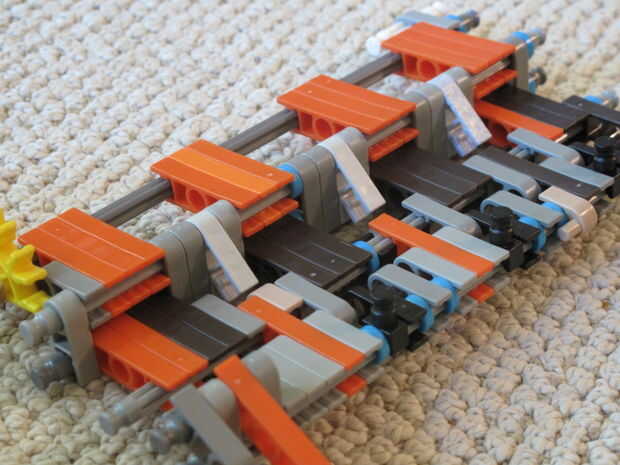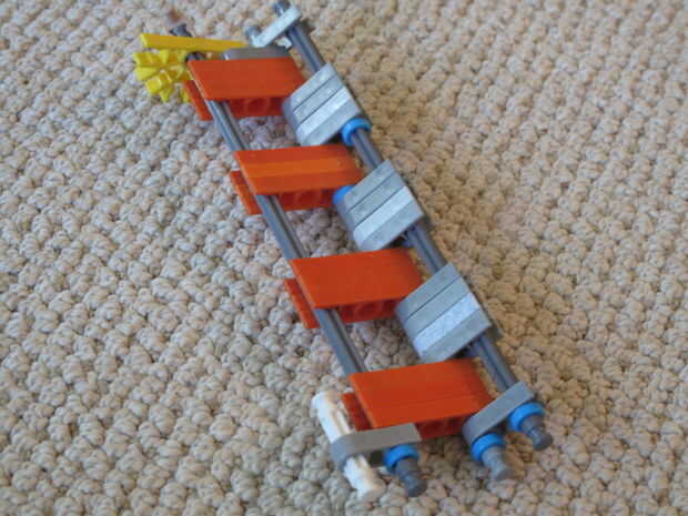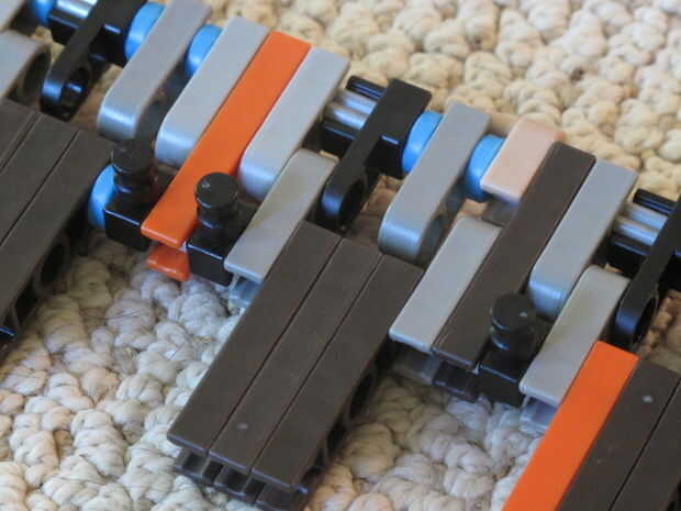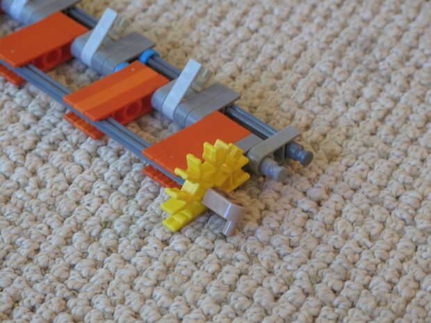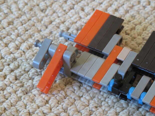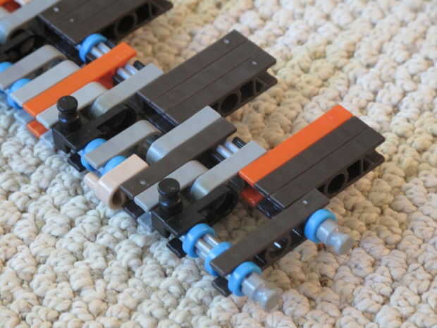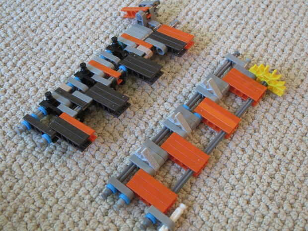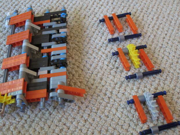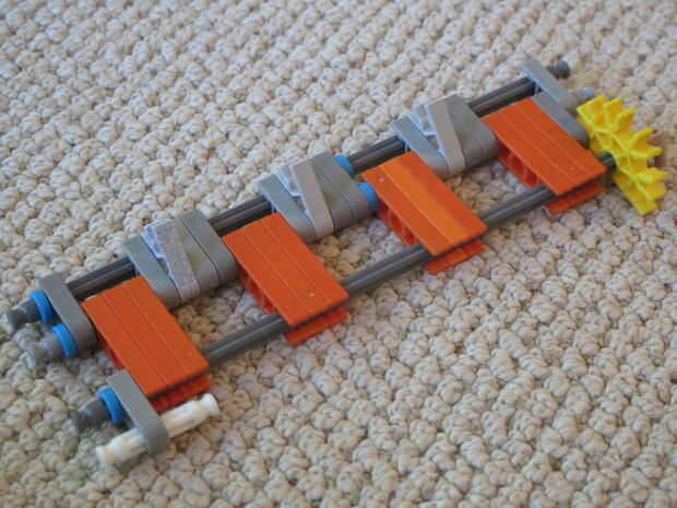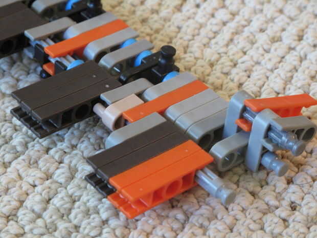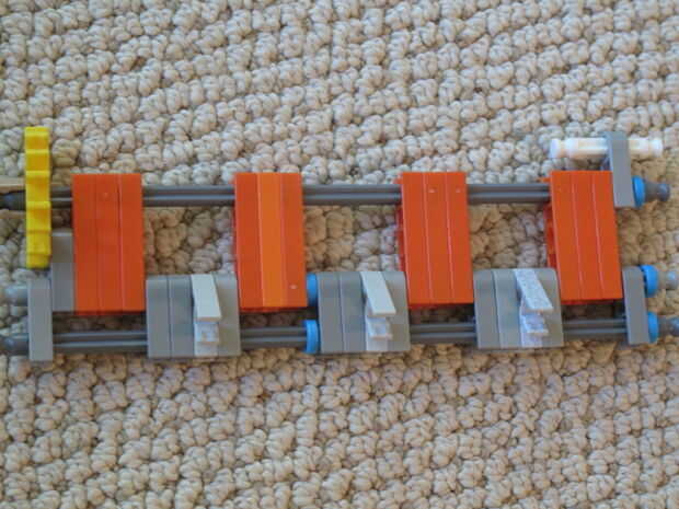 PIC. 14 - adjuntarlos. Puede ser un poco difícil de encajar la barra gris en los conectores naranja, pero asegúrese de que la bandeja no desmoronarse.