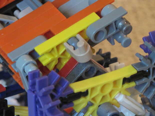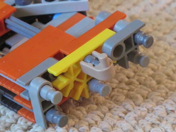 PIC. 17 - primer plano que muestra la conexión, que es un conector naranja y barra gris. debe ser entre dos espaciadores azul.