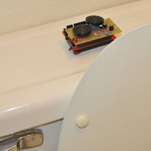Aseo Buddy se basa en una Hélice plataforma USB - fue inspirado por inodoros japoneses que juegan 'Flush de cortesía' sonido en lugar de realmente de lavado para ahorrar agua. También mejora la idea recordando que para colocar el asiento y cuando dejó las luces en.