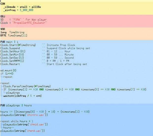 Entonces, vamos a añadir en el objeto reloj en tiempo real, que es parte de la descarga de la herramienta de la hélice. Cuando segundos y minutos son iguales a cero, nos va activador de reproducción de la muestra. Aquí está el código.