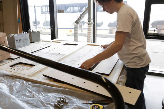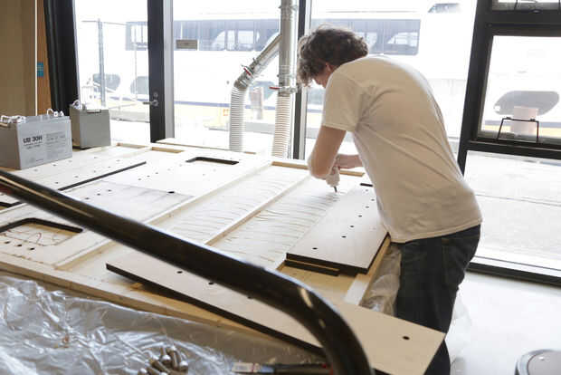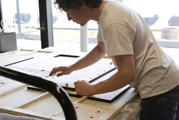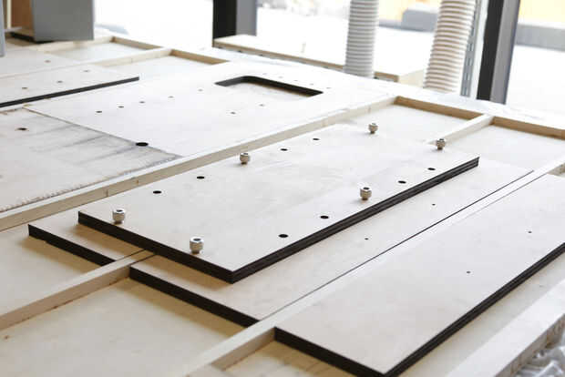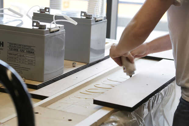 Coloque una buena cantidad de peso encima de estos paneles - usé las baterías - y esperar que se sequen.